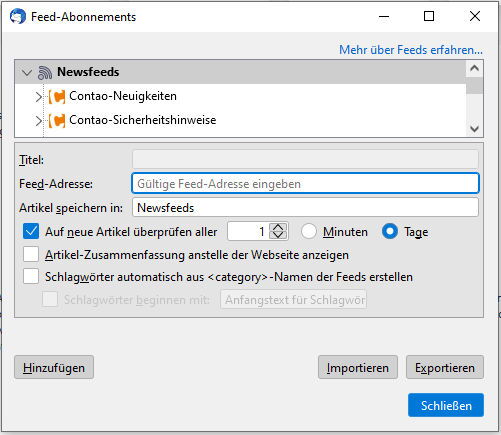 Mit Ihren Feed-Konto können Sie jetzt beliebig viele Feeds abonnieren und verwalten.