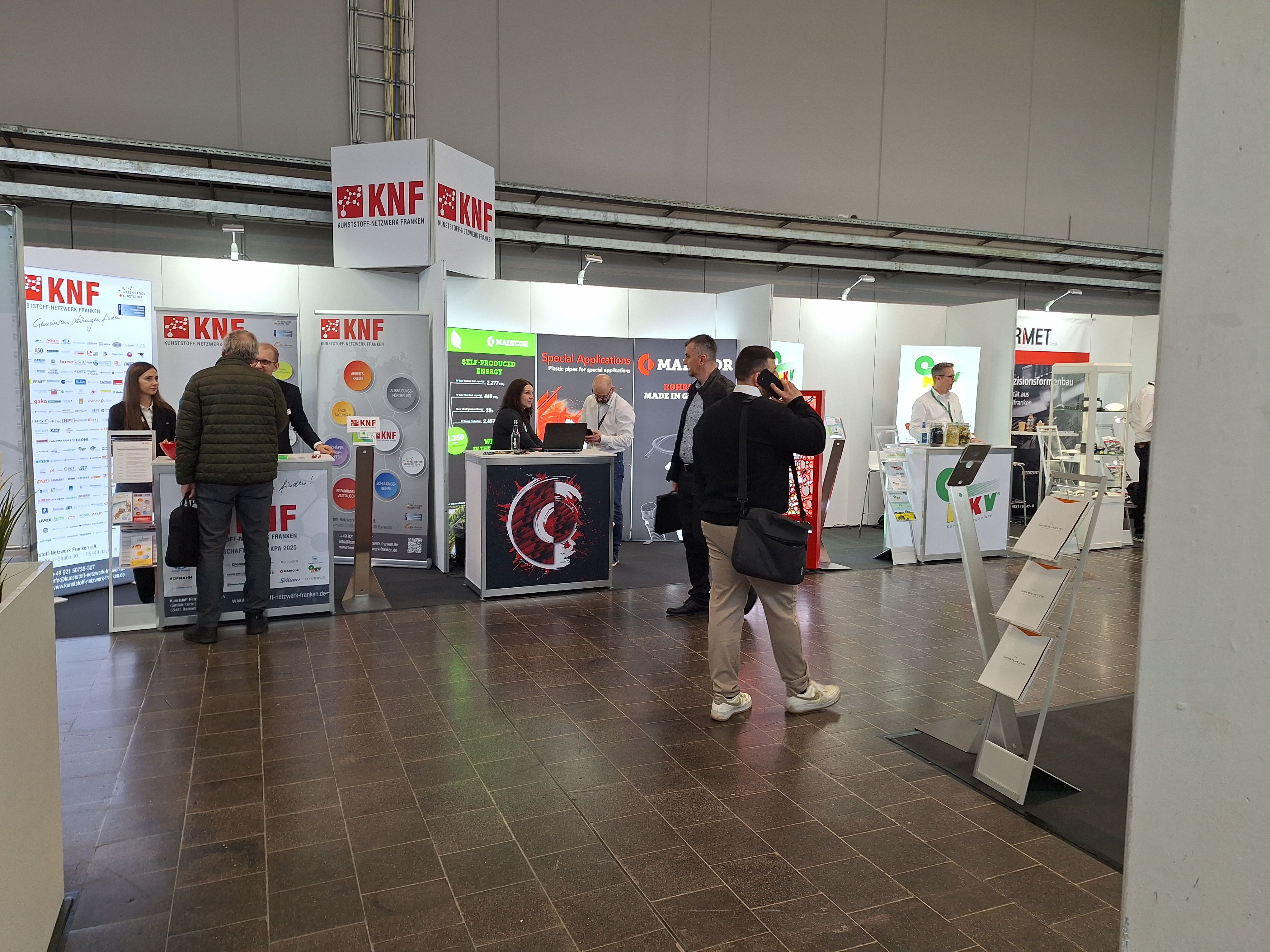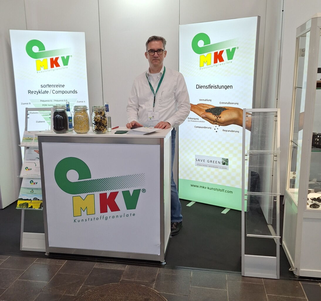Die MKV war, wie im Jahr zuvor, am Gemeinschaftsstand des KNF vertreten. Unser Team, Markus Lutz und Charlotte Müller, haben Rede und Antwort gestanden zu allen Fragen rund um das Thema Recycling von technischen Thermoplasten. Was ist ein Rezyklat? Wie funktioniert Recycling? Was ist der Unterschied zwischen Mahlgut, Regranulat und Compound?